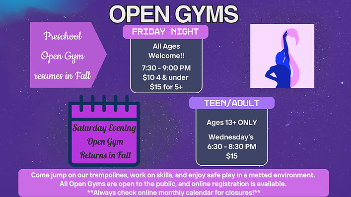 This is for ages 13+ who would like to continue working on gymnastics skills that have already been attained.